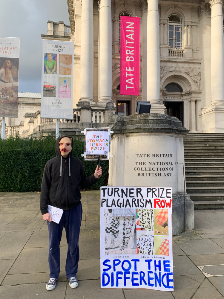 On December 3rd 2024, the Turner Prize was awarded at Tate Britain. Members of Black Ivory were outside staging a demo including the following placard relating to the Delaine Le Bas exhibit: